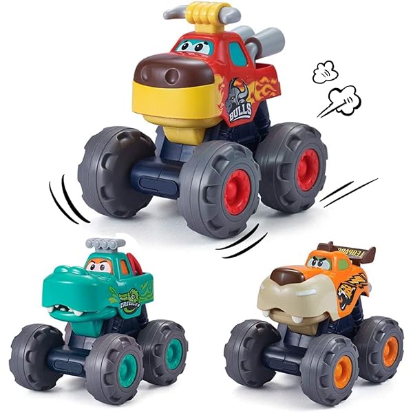 Amazon Com Hola Toy Cars For 1 Year Old Boy 3 Packs Friction Powered Pull Back Toddler Trucks For Age 1 2 3 Push And Go Monster Truck Birthday Gifts For 1 Year Old